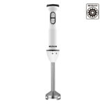 Batidora de brazo Küken de 750 W con brazo y cuchillas de acero inoxidable. Incluye vaso de 800 ml, dos velocidades con función Turbo y mango ergonómico. Diseño resistente, práctico y fácil de limpiar.
