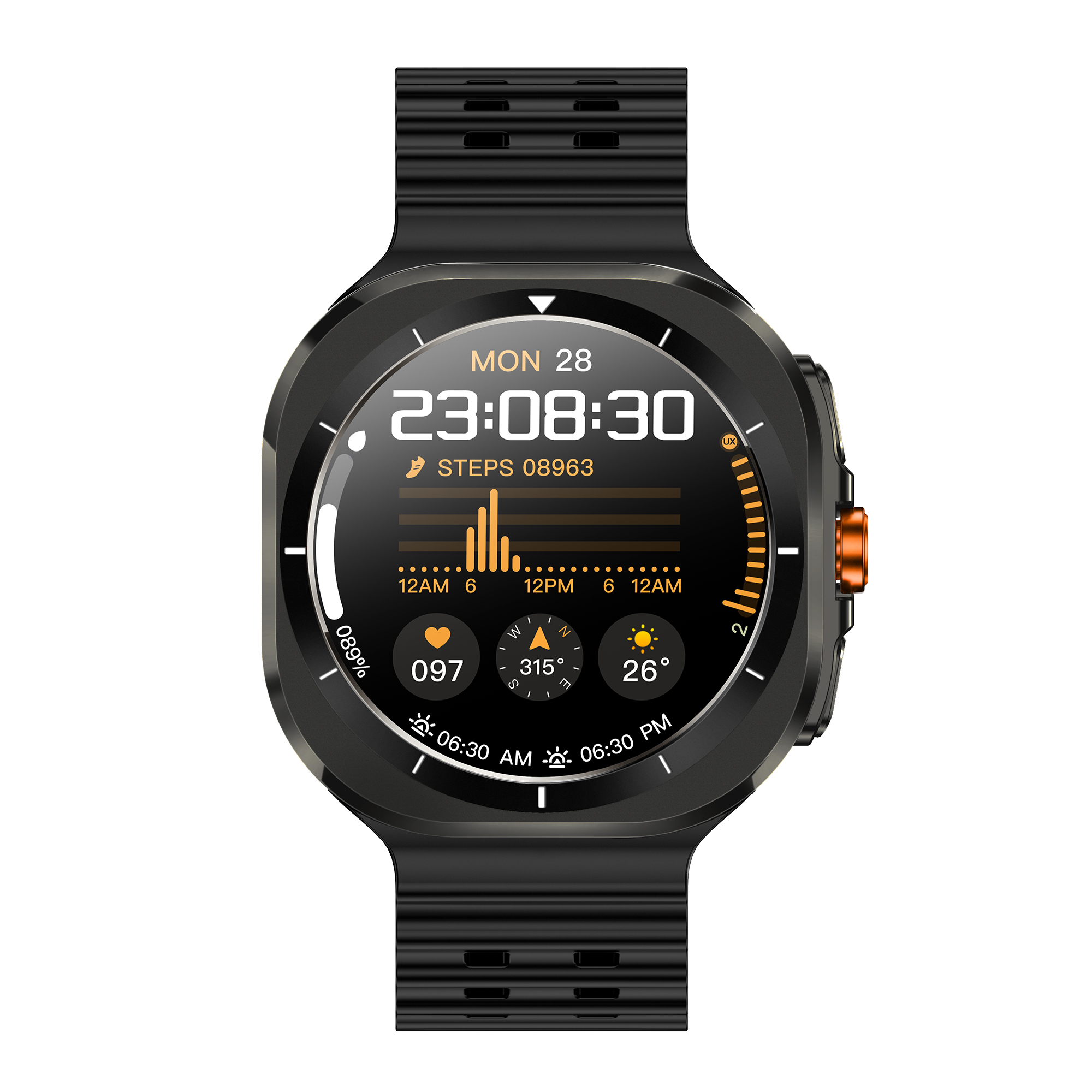 - 2 Correas intercambiables en color negro o naranja.